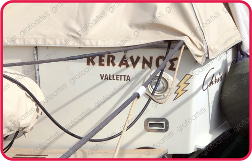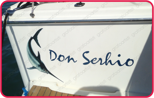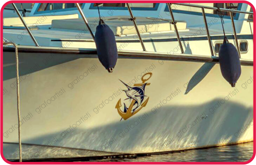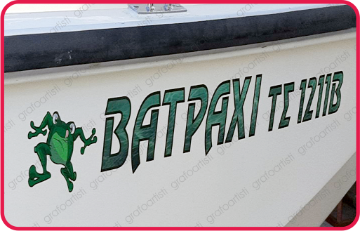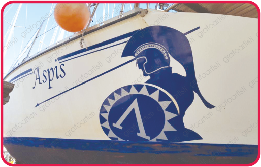 Τα φλατ αυτοκόλλητα είναι πολύ χαρακτηριστικά όταν ακολουθούνται και από κάποιο σχέδιο πλαϊνό που ταιριάζει στο σκάφος.