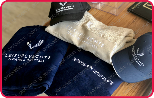 Κεντημένα ή με τύπωμα “Βελούδο ανάγλυφο” σε ό,τι απόχρωση είναι το λογότυπο του σκάφους σας. Minimum ποσότητα για κέντημα: 4τμχ