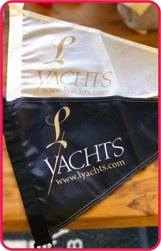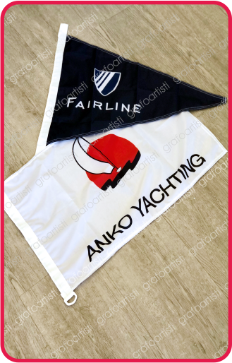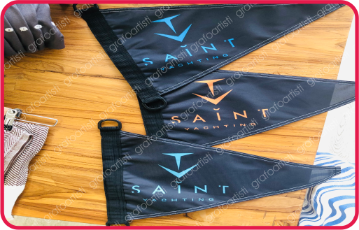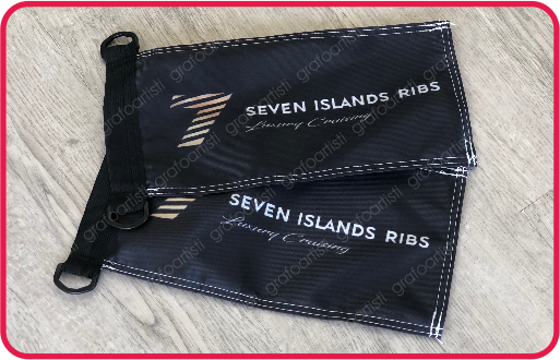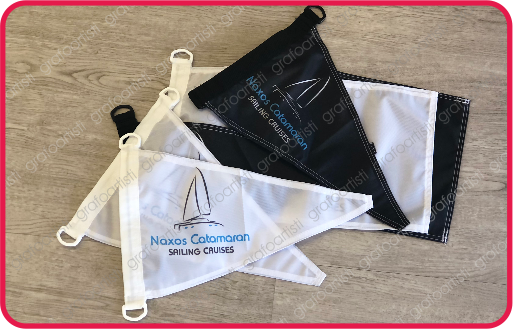 Οι υφασμάτινες σημαίες σκαφών με λογότυπο του σκάφους σας μπορεί να γίνει σε όποια διάσταση θέλετε & σχέδιο.