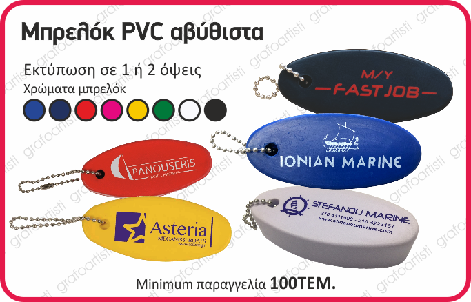 We have available 3 types of floating keychains: a) eva with 10mm thickness & special shapes, b) pvc standard shape & c) neoprene with standard size.